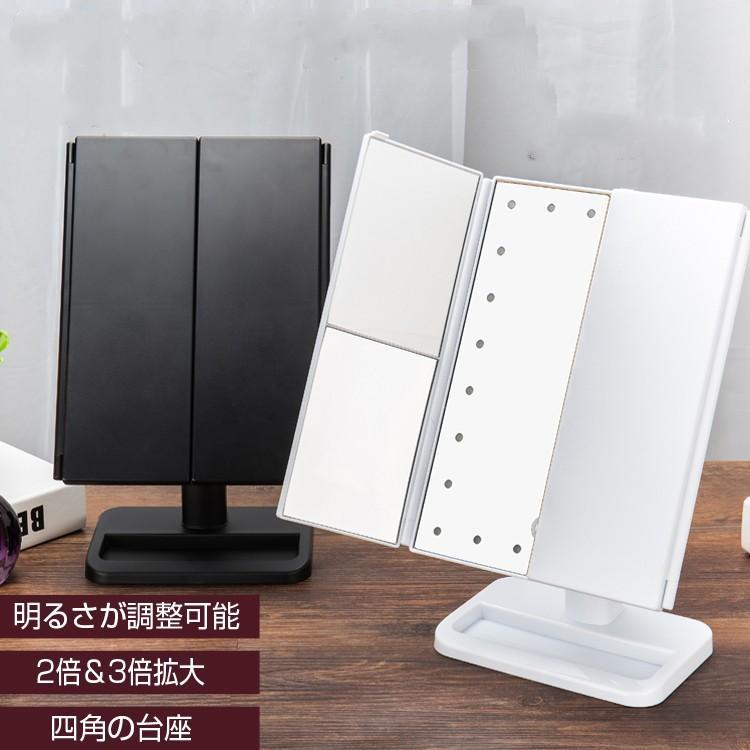 選べる3色 ホワイト ブラック ピンク 2倍 3倍 10倍 拡大 22個led付き Usb 電池式 180度角度調 Led 卓上 ミラー ワンタッチでonもoff 三面鏡 コンパクト かわいい 卓上ミラー 三面鏡 おしゃれ ライト付き 女優ミラー 卓上 Led ミラー ミラー ライト 女優ミラー 化粧 22灯